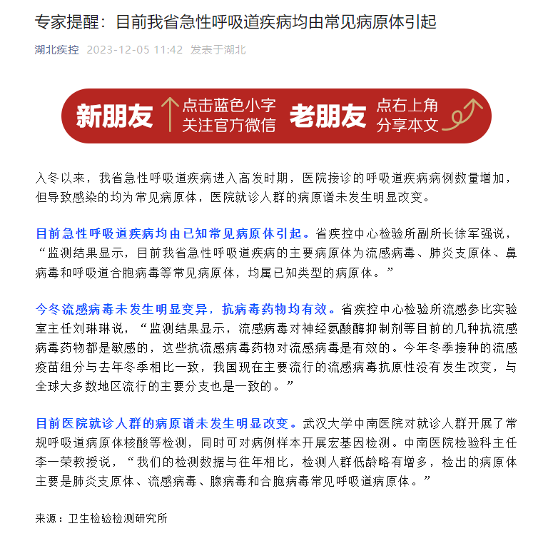 專家提醒:目前我省急性呼吸道疾病均由常見病原體引起