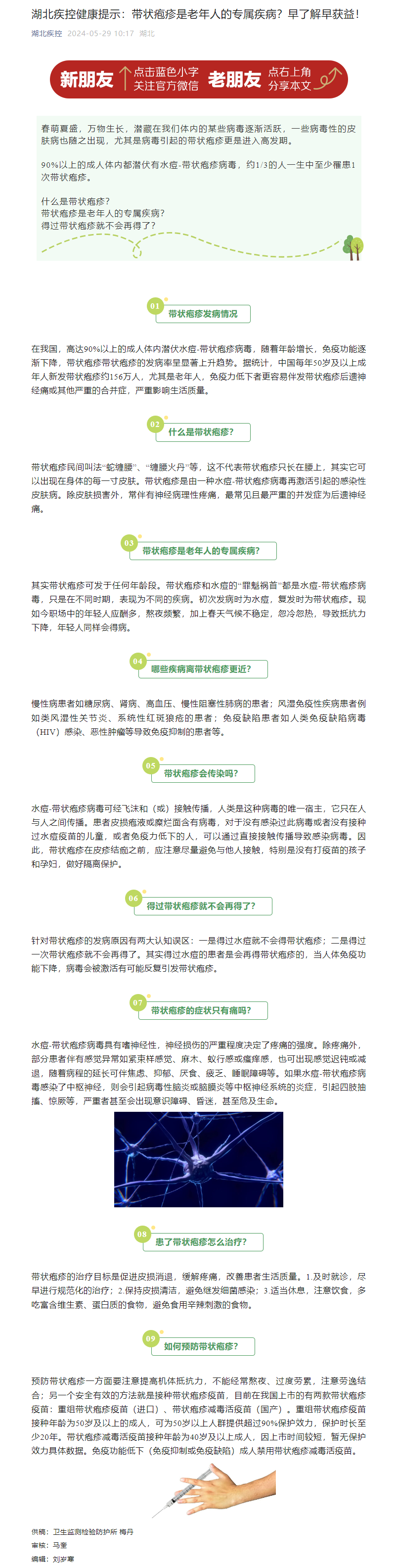 湖北疾控健康提示:帶狀皰疹是老年人的專屬疾病?早了解早獲益!