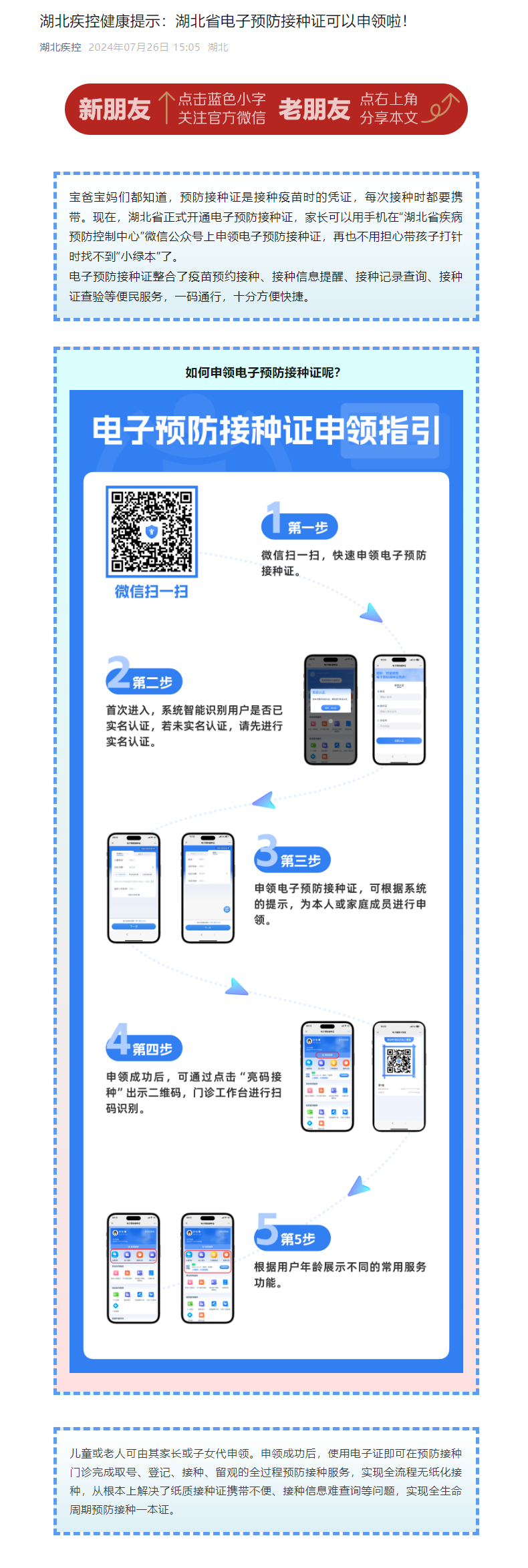 湖北疾控健康提示:湖北省電子預防接種證可以申領啦!