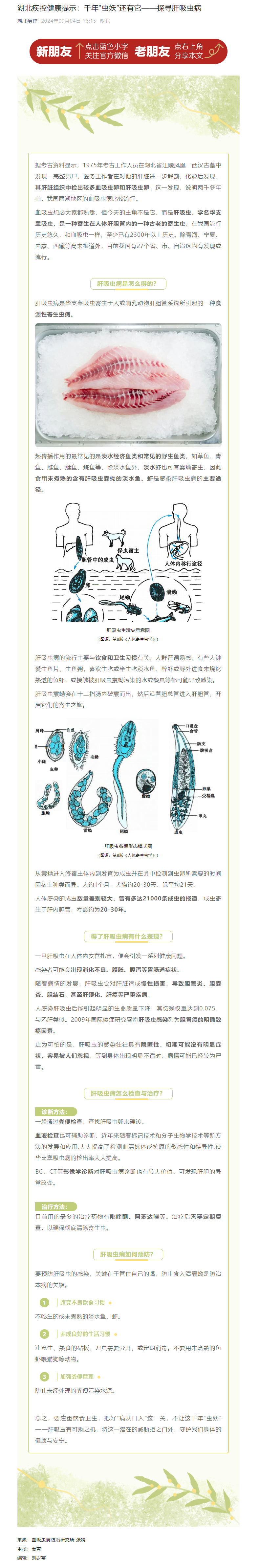 湖北疾控健康提示:千年“蟲妖”還有它——探尋肝吸蟲病