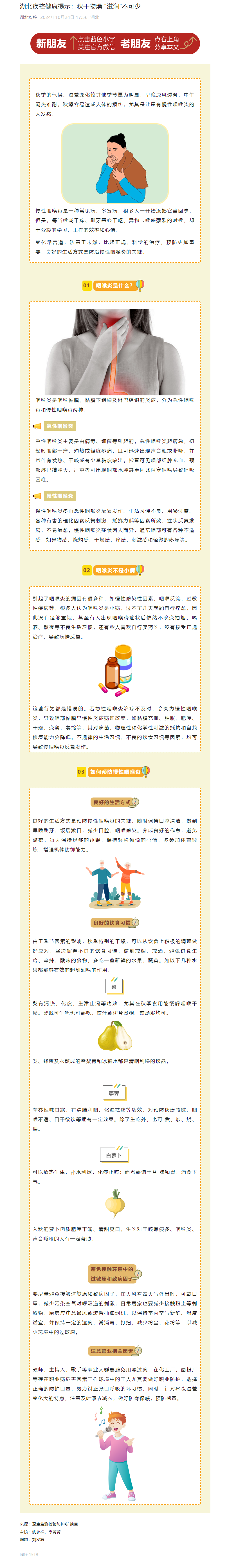 湖北疾控健康提示:秋干物燥 “滋潤”不可少