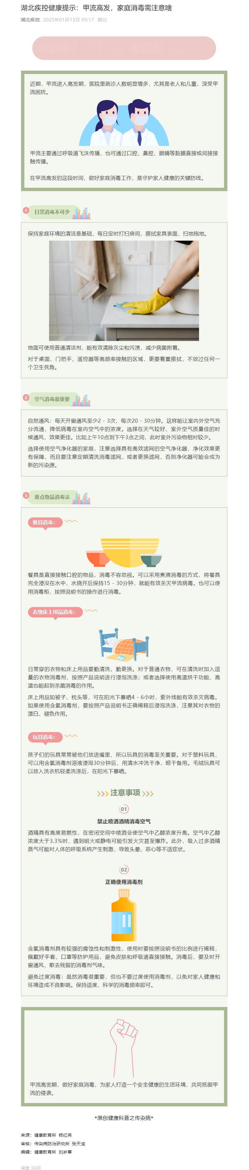 湖北疾控健康提示:甲流高發,家庭消毒需注意啥
