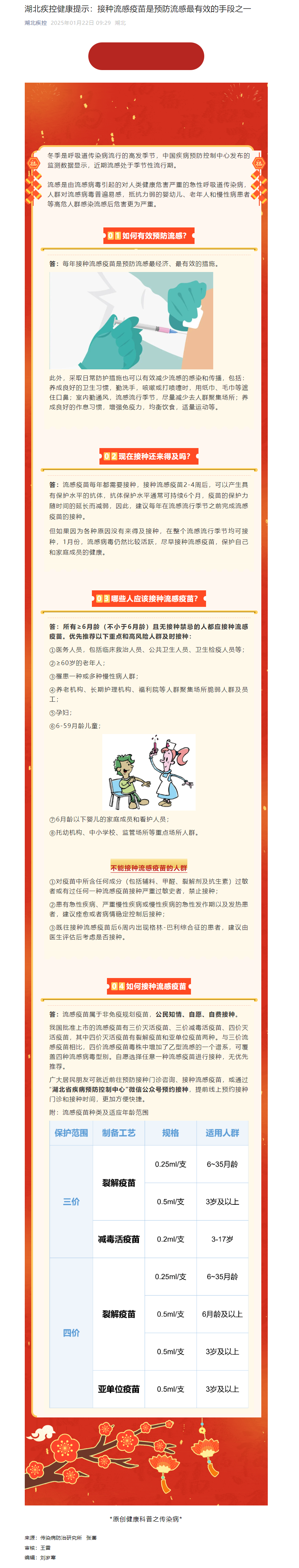 湖北疾控健康提示:接種流感疫苗是預(yù)防流感最有效的手段之一