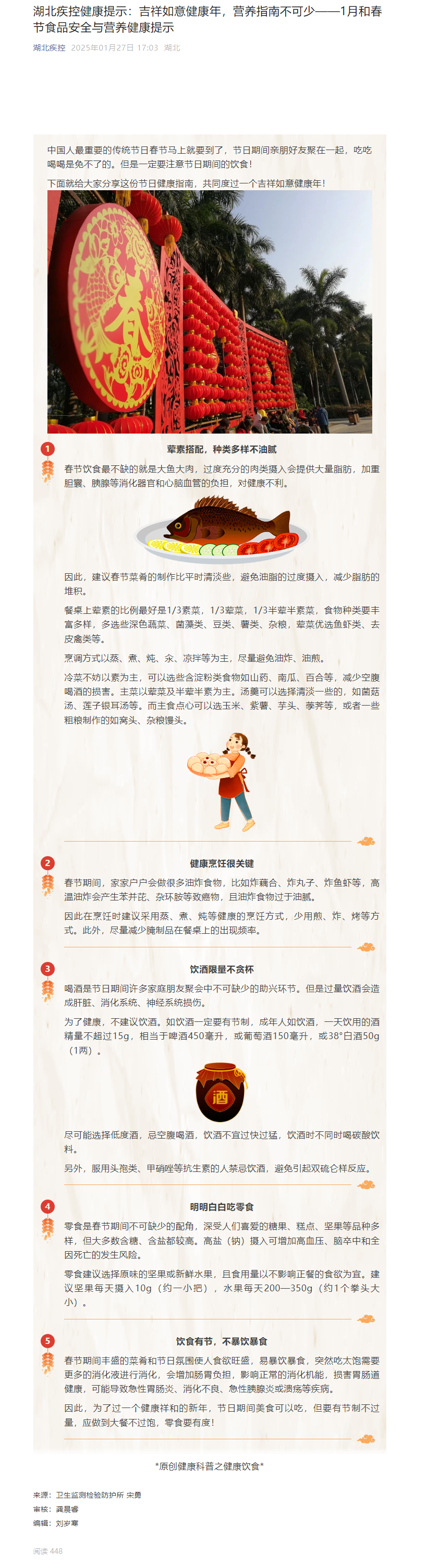 湖北疾控健康提示:吉祥如意健康年,營養指南不可少——1月和春節食品安全與營養健康提示
