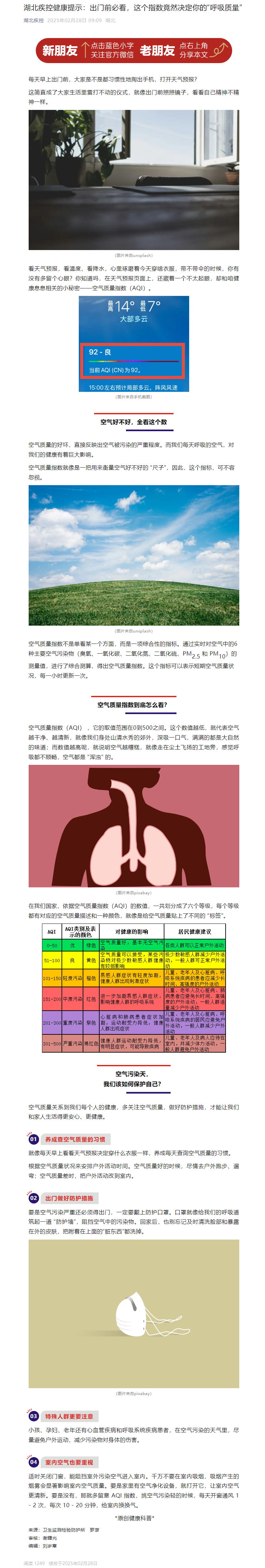 湖北疾控健康提示:出門前必看,這個指數竟然決定你的“呼吸質量”