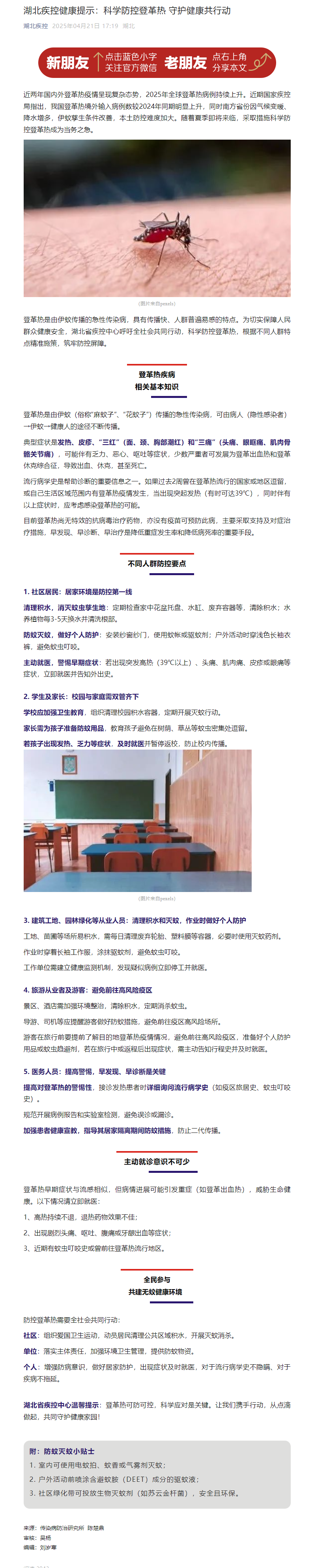 湖北疾控健康提示:科學防控登革熱 守護健康共行動
