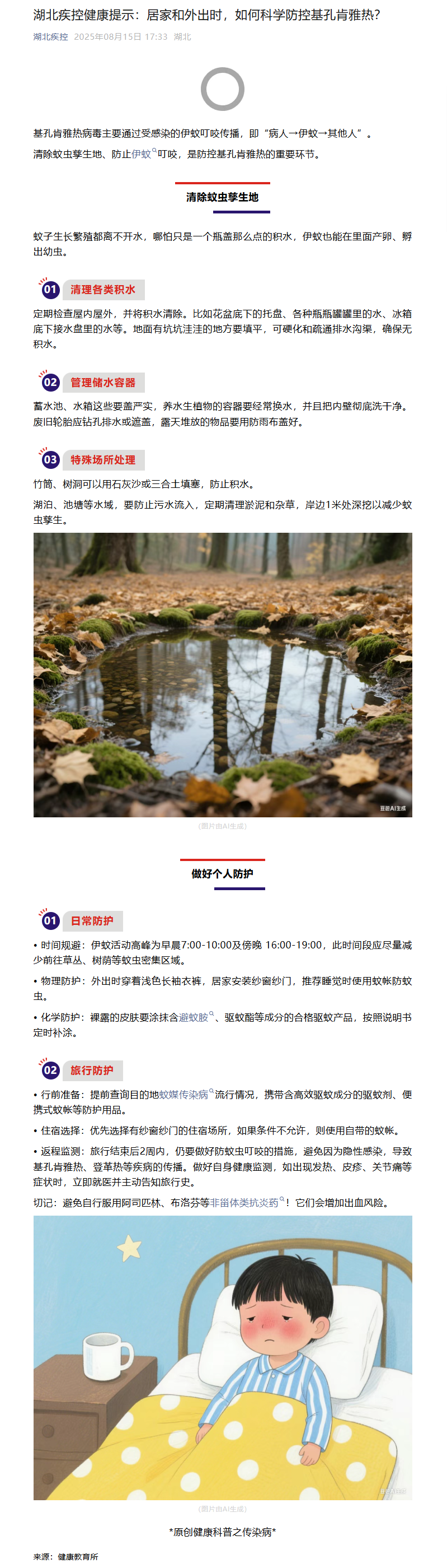 湖北疾控健康提示:居家和外出時,如何科學(xué)防控基孔肯雅熱?