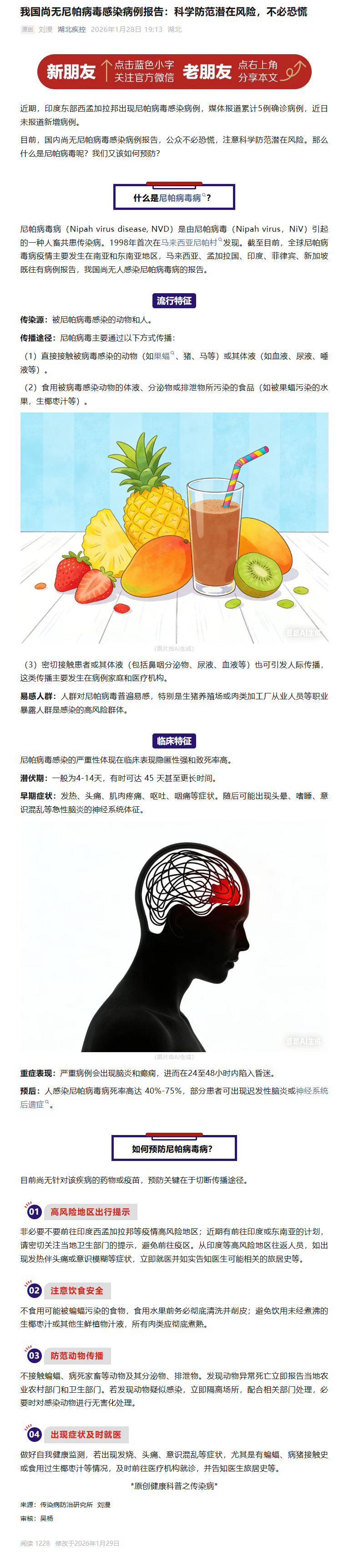 我國尚無尼帕病毒感染病例報(bào)告:科學(xué)防范潛在風(fēng)險(xiǎn),不必恐慌