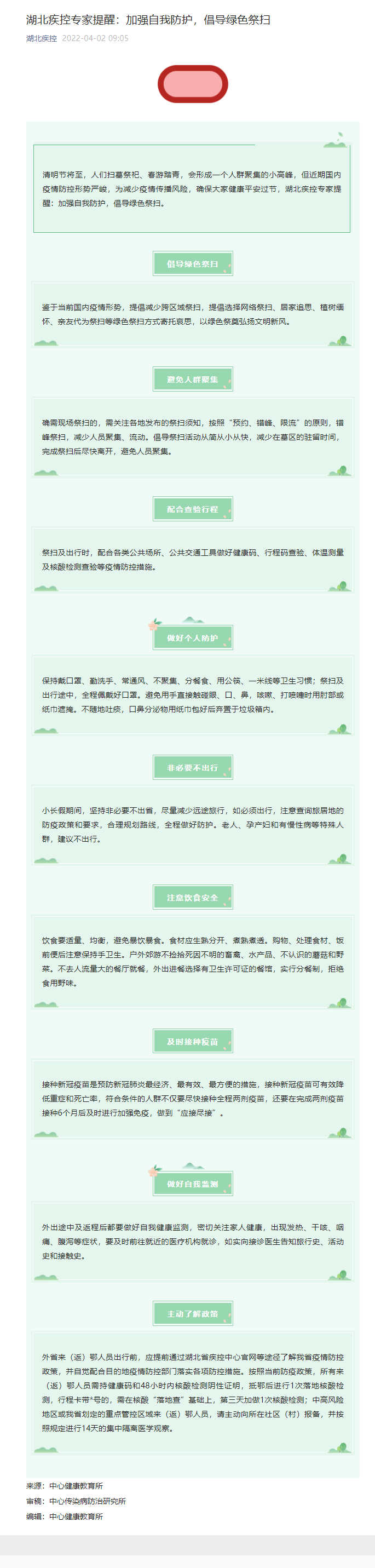 湖北疾控專家提醒:加強(qiáng)自我防護(hù),倡導(dǎo)綠色祭掃