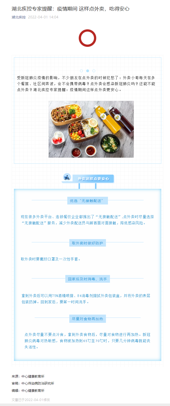 湖北疾控專家提醒:疫情期間 這樣點外賣,吃得安心
