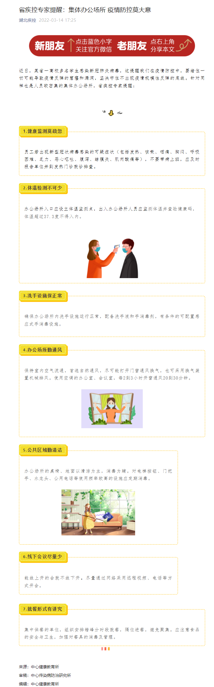 省疾控專家提醒:集體辦公場所 疫情防控莫大意