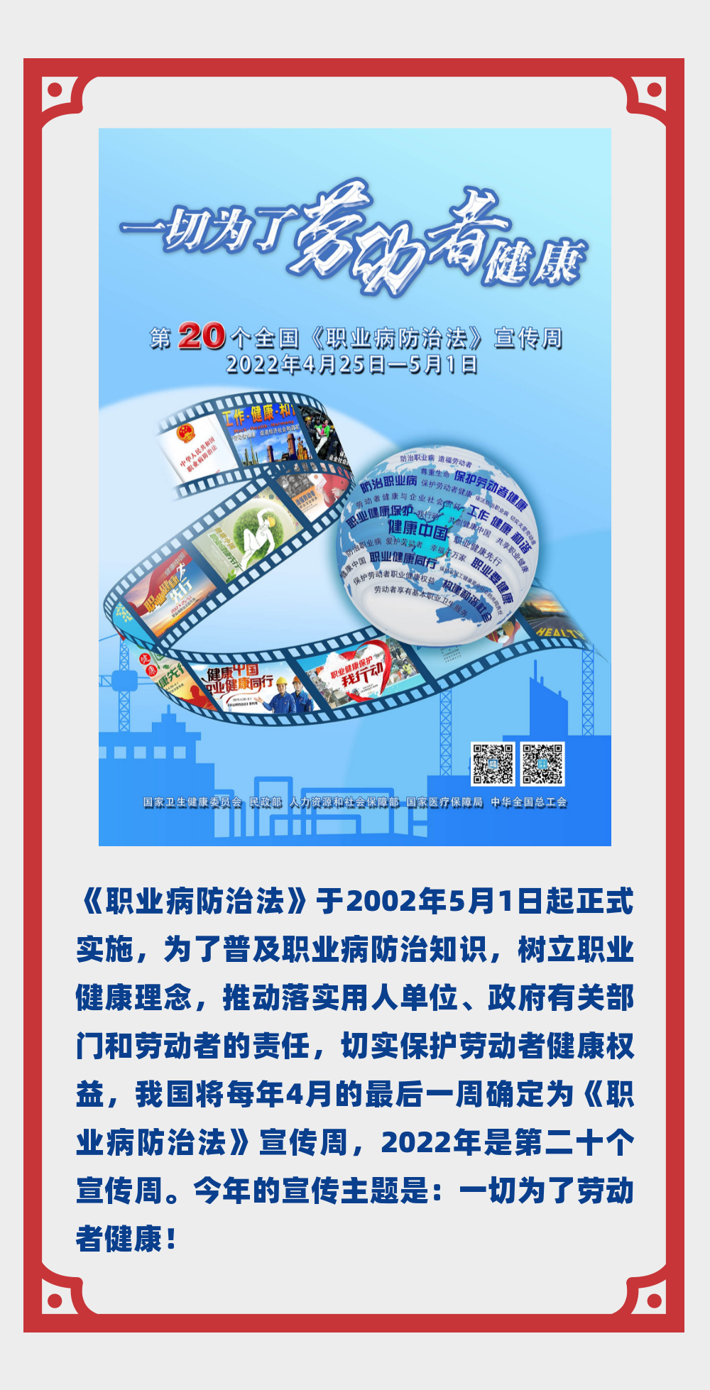 第二十個《職業病防治法》宣傳周:一切為了勞動者健康!
