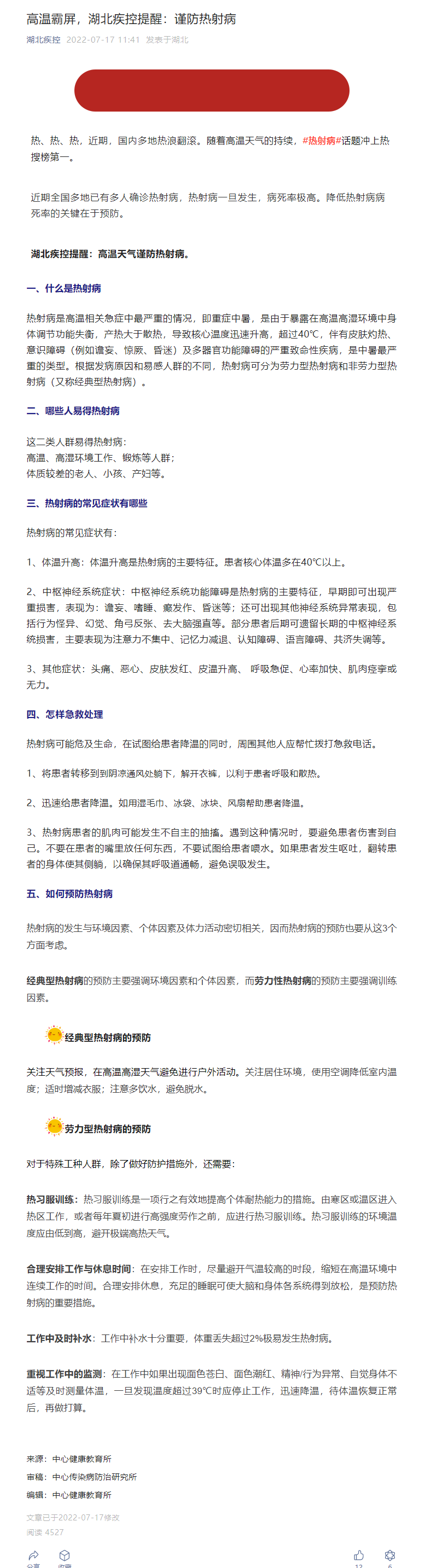 高溫霸屏,湖北疾控提醒:謹防熱射病
