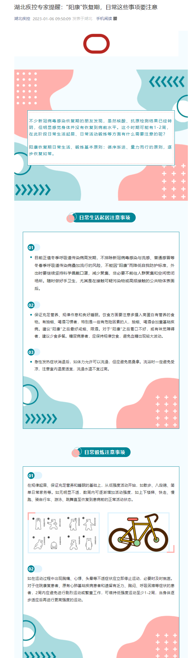 湖北疾控專家提醒:“陽康”恢復(fù)期,日常這些事項要注意