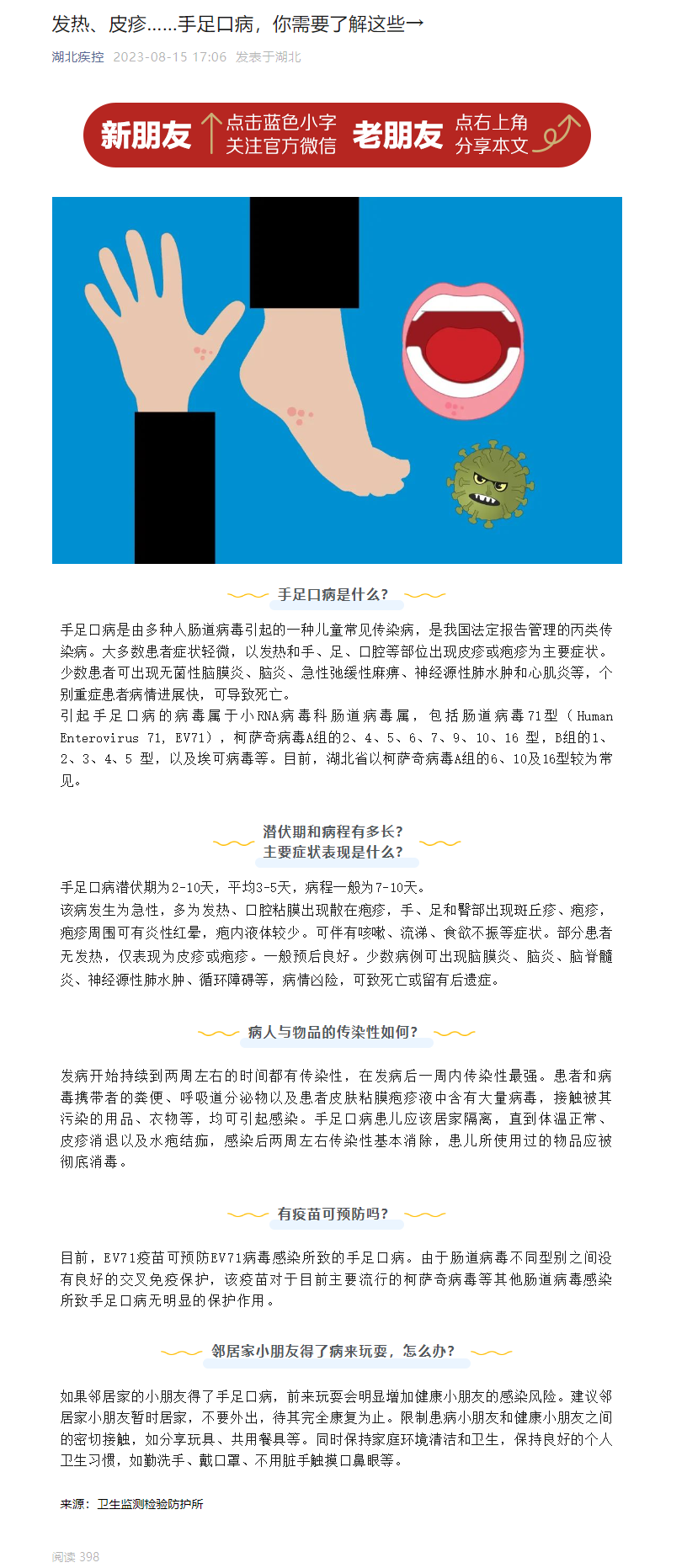 時間:2023-08-16 08:38:34來源:湖北省疾病預防控制中心  點擊量: