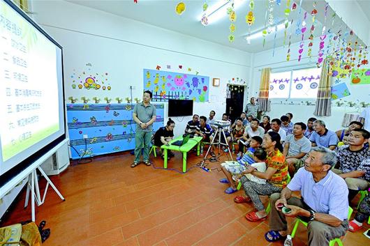 省疾控中心專家為安置群眾講解防病知識。 (記者 倪娜 攝)