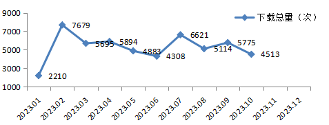 9月,數據庫總下載量5775次,比去年同期上升19.36%;10月,數據庫總下載量4513次,同比上升28.87%。