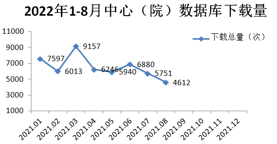 7月,數(shù)據(jù)庫(kù)總下載量5751次,比去年同期下降21.39%;8月,數(shù)據(jù)庫(kù)總下載量4612次,同比下降26.41%。