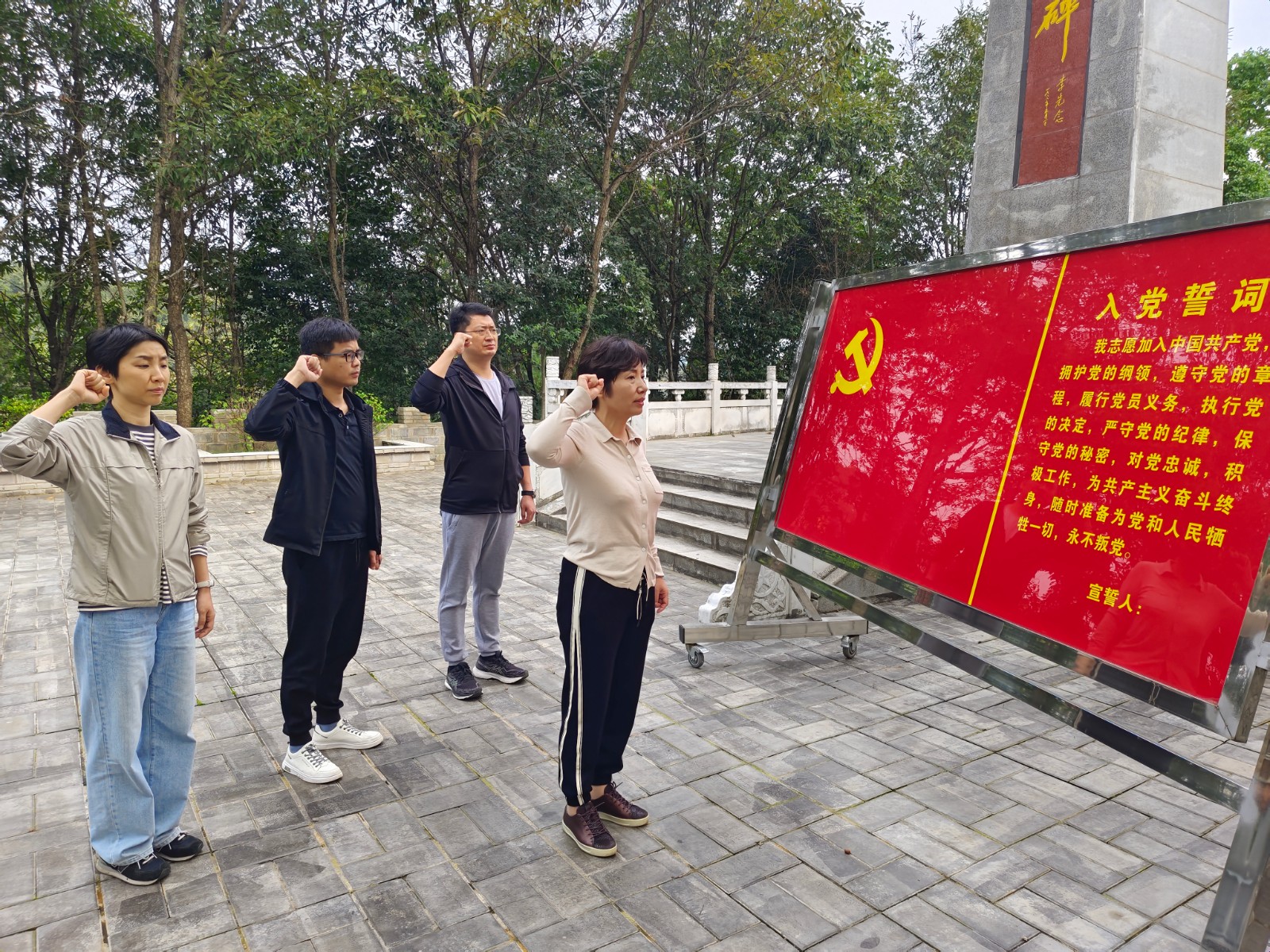 隨后大家來到紀念碑前緬懷英烈,向革命烈士敬獻花籃并三鞠躬,在支部書記陳紅纓同志的帶領下,生物辦全體黨員和入黨積極分子列隊肅立,高舉右拳,面對著鮮紅的黨旗莊嚴宣誓,重溫入黨誓詞。