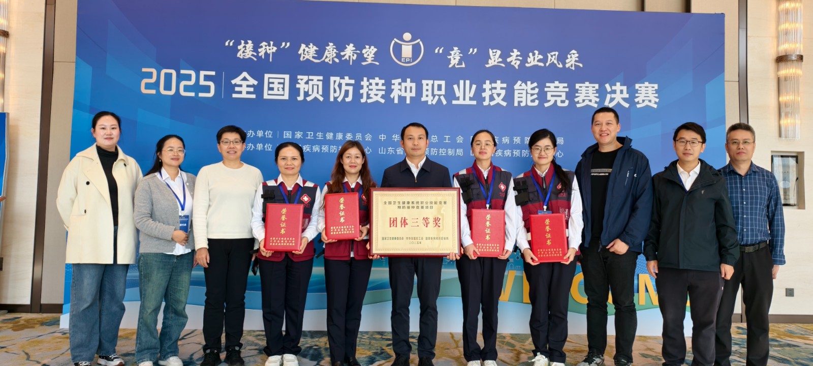 11月11日至12日,由國家衛生健康委、中華全國總工會、國家疾控局聯合主辦的2025年全國預防接種職業技能競賽決賽在山東青島舉行。全國31個?。ㄗ灾螀^、直轄市)及新疆生產建設兵團共32支隊伍、128名參賽隊員同場競技。經過激烈角逐,湖北代表隊憑借扎實的專業知識和技能,最終脫穎而出,榮獲團體三等獎(全國第9名)和4項個人獎的優異成績,展現了荊楚預防接種隊伍的過硬實力。