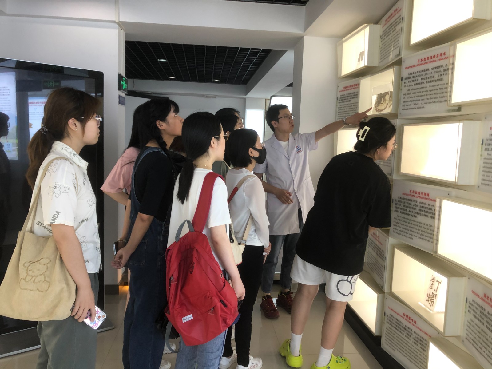 活動(dòng)采用參觀學(xué)習(xí)、座談交流的方式。首先,由血防所病原室負(fù)責(zé)人李博主管技師帶領(lǐng)大家參觀學(xué)習(xí)了中心(院)醫(yī)學(xué)生物標(biāo)本館,依次從吸蟲、絳蟲、線蟲、原蟲、動(dòng)物宿主、媒介節(jié)肢動(dòng)物等8個(gè)展區(qū)進(jìn)行了詳細(xì)講解。大學(xué)生們通過實(shí)物標(biāo)本與文字圖片的學(xué)習(xí),了解了湖北省血吸蟲病的防治歷史和當(dāng)前疫情現(xiàn)狀,以及其它寄生蟲病的危害與防控措施。隨后,血防所劉斯所長(zhǎng)等與大學(xué)生們進(jìn)行了深入與親切的交流,涉及省血防所的具體工作職責(zé),我省血防防控現(xiàn)狀、監(jiān)測(cè)措施、健康教育、科學(xué)研究等方面的內(nèi)容。