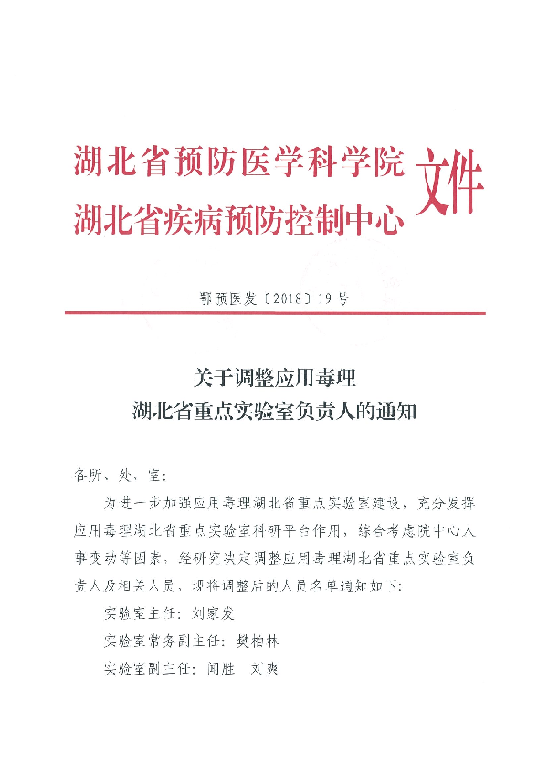關(guān)于調(diào)整應(yīng)用毒理學(xué)湖北省重點實驗室負(fù)責(zé)人的通知